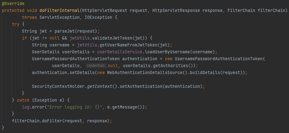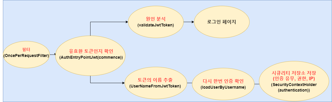현재 토큰과 관련된 영향이 없으므로 filterChain.doFilter(request, response) 실행한다.