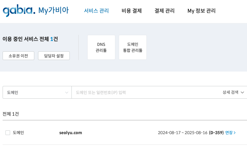 이제 가비아 도메인의 네임 서버에 연결을 해야합니다. 네임 서버는 IP 주소와 도메인 주소를 연결해주는 역할을 합니다.