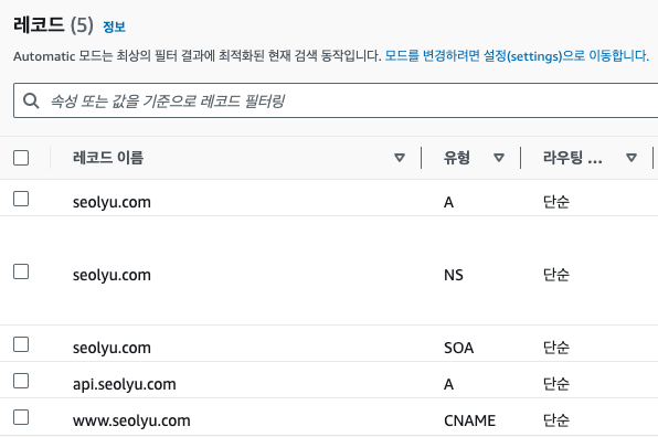 - 이름 : api.seolyu.com 유형 : A 값 : 퍼블릭 IPv4 주소