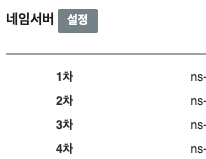 4개의 값을 복사합니다. 가비아의 해당 도메인의 관리 콘솔에서 네임 서버에 복사한 값을 추가합니다.