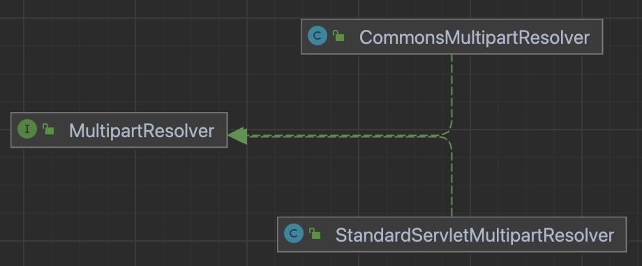 MultipartFilter에서 MultipartResolver 인터페이스를 사용할 때, CommonsMultipartResolver와 StandardServletMultipartResolver 두 가지 구현체로 나뉜다.