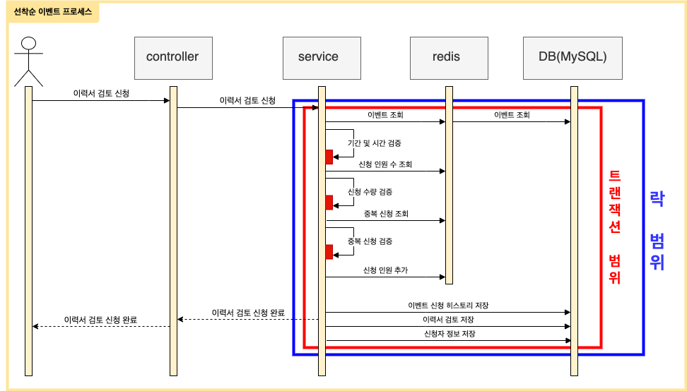 RDB 를 의존하는 기본 방식에서 SET 자료형과 Redisson Lcok 바꾸어서 아래 그림처럼 적용하였습니다.