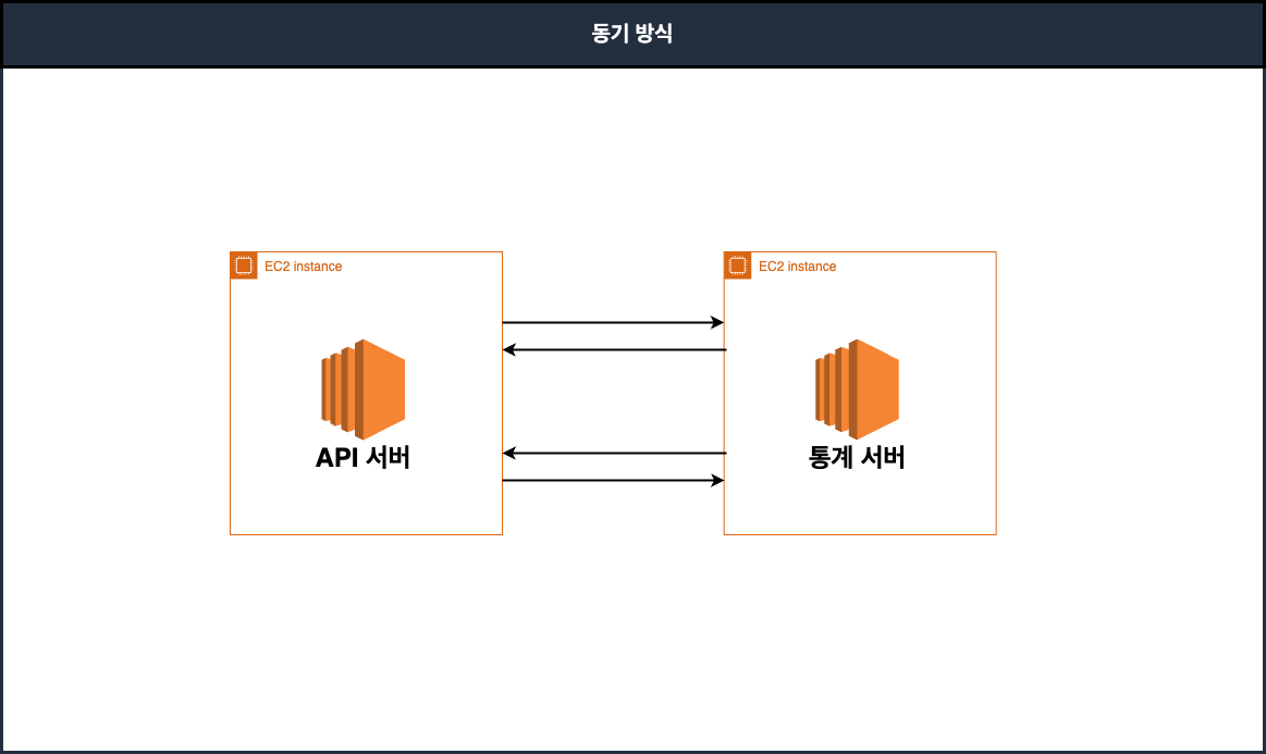 프로젝트 구조상 통계 서버와 API 서버가 분리되어 있었고, 처음에는 이 두 서버 간의 통신을 동기 방식의 API 호출로 처리하고 있었습니다. 그러나 이 방식은 여러 가지 문제를 야기했습니다.